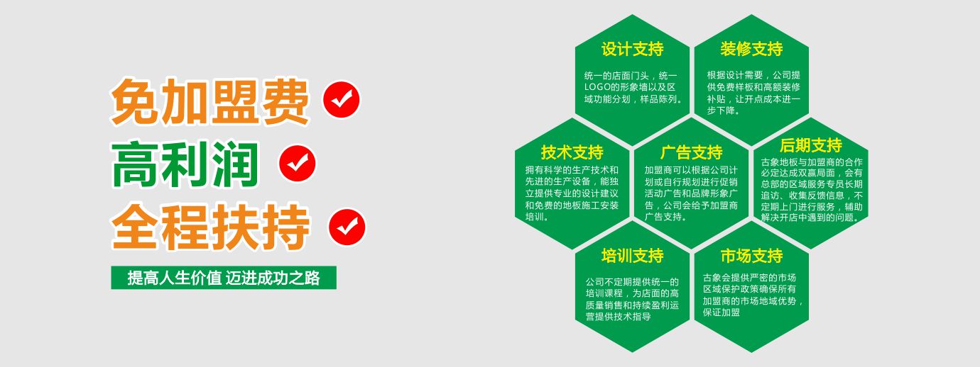 | 古象地板自1998年成立,專注地板行業23年,以環保、舒適的地板產品,出現在世界的每一個角落為目標,打造綠色居住環境,傳遞健康生活理念。對于眾多創業投資者而言,在進行地板品牌加盟時,.. |